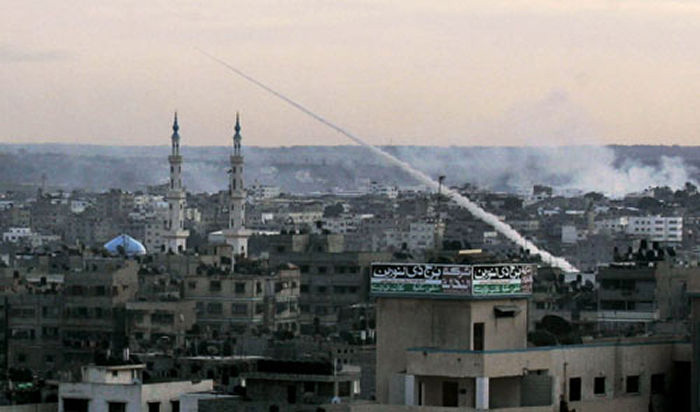 A rocket fired from a densely populated civilian area in Gaza towards Israel (AP)